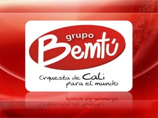 Organización Musical Grupo Bemtú es una empresa de Cali, Colombia que ofrece servicios musicales con orquestas y grupos artísticos desde hace 29 años. La empresa cuenta con varias agrupaciones musicales como la Orquesta Grupo Bemtú, Banda Light Orquesta y Crossover Live Orquesta, así como cotillones con bailarines. La misión de la empresa es ofrecer servicios musicales de alta calidad para eventos.