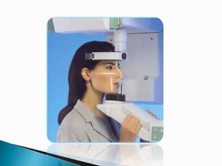 El documento describe el procedimiento de una radiografía panorámica o ortopantomografía, la cual permite visualizar todo el sistema dentomaxilar y realizar un diagnóstico temprano de alteraciones. Explica los pasos para posicionar correctamente al paciente, ajustar el cefalostato y tomar la radiografía para obtener una imagen de alta calidad que muestre la relación entre las estructuras faciales, dientes y huesos.