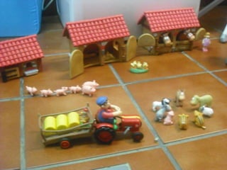 La madre del niño se informó sobre cómo conseguir una granja de juguete por separado, compró las piezas individualmente y las ensambló para formar una granja de juguete para el niño.