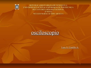 El documento describe las funciones y partes principales de un osciloscopio. Explica que un osciloscopio muestra señales eléctricas variables en el tiempo a lo largo de ejes X e Y que representan tiempo y voltaje. También describe los diferentes tipos de ondas que puede mostrar un osciloscopio, incluyendo ondas senoidales, cuadradas, triangulares y de pulsos.
