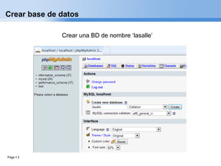 El documento proporciona instrucciones para instalar osCommerce 2.3.1 en un servidor web Apache. Esto incluye crear una base de datos MySQL llamada 'lasalle', descargar e instalar osCommerce en un directorio específico, y completar el proceso de instalación ingresando detalles de la base de datos, tienda y administrador.
