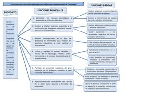 El documento presenta el mapa funcional de la Licenciatura en Informática Aplicada a la Enseñanza e Implementación de Tecnología de la Universidad de Panamá. El propósito principal es formar profesionales de informática capacitados para apoyar procesos de aprendizaje, innovación y desarrollo del país. Las funciones principales incluyen administrar recursos tecnológicos, diseñar sistemas educativos, realizar investigación e implementar tecnología en procesos de aprendizaje.