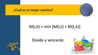 El documento trata sobre el protocolo OSPF y su funcionamiento, destacando la diferencia entre algoritmos de estado del enlace y algoritmos de vector de distancia. Se menciona el cálculo del costo de una ruta basado en el tiempo de retardo, el tráfico promedio y el número de saltos entre nodos, así como la configuración de OSPF. Además, se discute el uso del algoritmo de Dijkstra para encontrar rutas óptimas entre nodos.