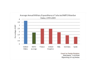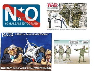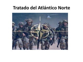 El documento proporciona una historia detallada de la OTAN desde su creación después de la Segunda Guerra Mundial hasta eventos recientes. Originalmente creada para disuadir la expansión soviética en Europa, la OTAN ha tenido que redefinir continuamente su enfoque a medida que cambiaban las amenazas geopolíticas. Actualmente, la alianza se enfoca en desafíos como el terrorismo y las armas de destrucción masiva, y ha ampliado su membresía y alcance geográfico."