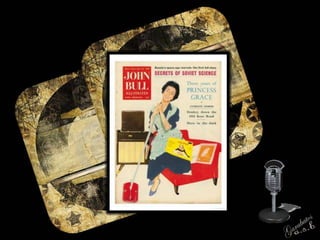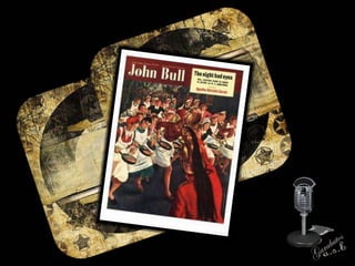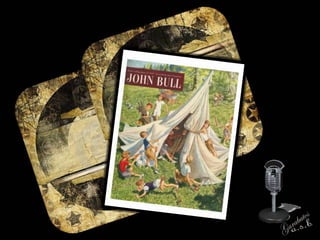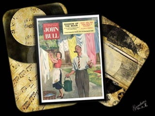 El documento describe la historia del periódico dominical John Bull, establecido en Londres en 1820. Continuó publicándose hasta 1892 bajo ese nombre y hasta 1957 bajo títulos similares. En la década de 1960, después de una caída en la circulación, la revista cambió su nombre a Today, The New John Bull para atraer a lectores más jóvenes con contenido sobre la cultura juvenil como el rock and roll. Sin embargo, los ingresos publicitarios no cubrían los costos y la publicación cerró en 1964, fusionándose oficialmente