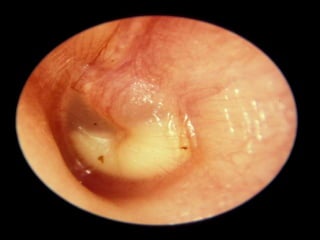 La otitis media aguda se define como la presencia de líquido o exudado en la cavidad del oído medio de forma aguda. Es común en niños pequeños, afectando entre el 20-60% de los niños de 3 años. Los principales agentes causantes son Streptococcus pneumoniae, Haemophilus influenzae y Moraxella catarrhalis. El tratamiento antibiótico es efectivo en la mayoría de los casos y busca prevenir complicaciones como la perforación timpánica o infecciones más graves.
