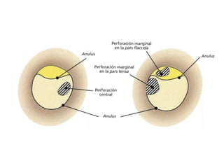 La otitis media crónica es un proceso inflamatorio del oído medio de curso lento con tendencia a persistir y dejar secuelas. Puede ser supurada con perforación timpánica o no supurada con tímpano intacto. Los principales gérmenes implicados son Pseudomonas aeruginosa, Proteus mirabilis y Staphylococcus aureus. Los síntomas incluyen otorrea, hipoacusia y dolor. El diagnóstico se realiza mediante otoscopia, tac de oídos y audiometría. El tratamiento consiste