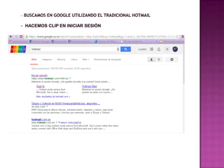 Microsoft Outlook es un software de correo electrónico y agenda que puede usarse de forma independiente o en una red compartida. Outlook Express es otro cliente de correo electrónico de Microsoft más sencillo y especializado en correo y noticias. El documento recomienda el uso de programas de correo libres como Netscape en lugar de Outlook debido a problemas comunes de virus y pérdida de datos.