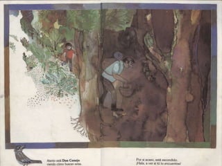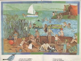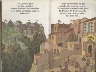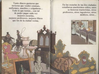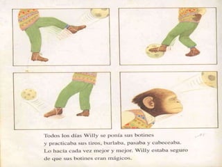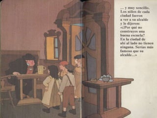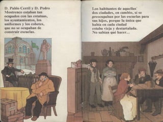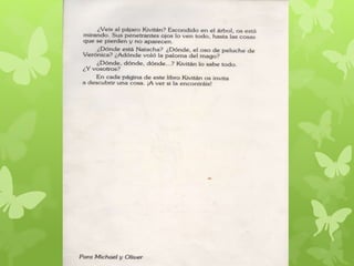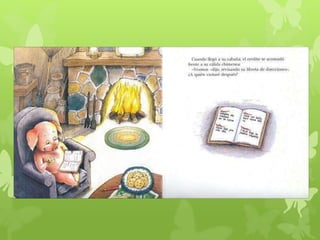 Este documento presenta un cuento para niños de primer grado sobre una princesa llamada Elizabeth. Ella persigue a un dragón que destruyó su castillo y secuestró a su prometido, el príncipe Ronaldo. Elizabeth engaña al dragón para que vuele alrededor del mundo repetidamente hasta que queda agotado. Ella rescata a Ronaldo pero él la critica por su apariencia desaliñada, por lo que Elizabeth decide no casarse con él.