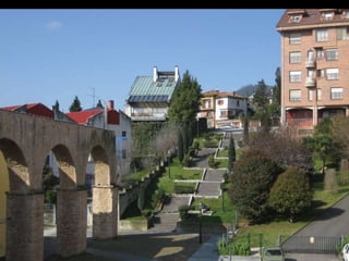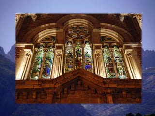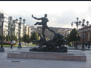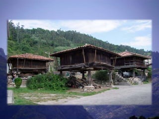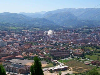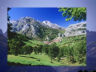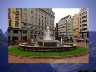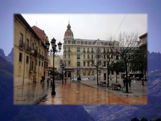 Este documento proporciona información sobre varios lugares de interés en Asturias, España. Describe la catedral gótica de Oviedo que se construyó durante tres siglos, así como varios objetos sagrados que alberga. También menciona el Hotel de la Reconquista donde se entregan los Premios Príncipe de Asturias y lugares como el Santuario de Covadonga y los Picos de Europa. Resalta aspectos de la arquitectura asturiana como los hórreos y destaca la belleza natural de la región.