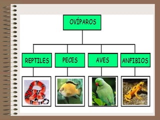 Los reptiles se reproducen poniendo huevos que protegen y alimentan a los bebés reptiles mientras crecen dentro, los anfibios pueden vivir tanto en el agua como en la tierra y también se reproducen por huevos, y las aves, peces y algunos anfibios ponen sus huevos en nidos o el agua donde los padres los cuidan hasta que nacen.
