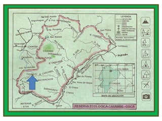 El documento detalla la historia, cultura y aspectos arqueológicos de Oyacachi, considerado el último pueblo libre de los Cayambis. Incluye información sobre asentamientos, tradiciones artesanales, y la influencia de la religión en la comunidad local. También menciona sitios emblemáticos y recursos naturales de la región, como balnearios y cerámica.