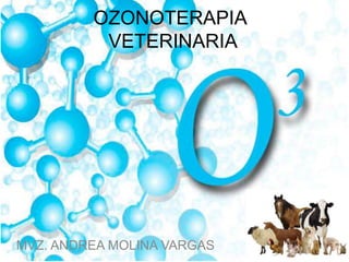 La ozonoterapia veterinaria consiste en el uso del ozono como elemento catalizador en tratamientos alternativos para animales. El ozono es una forma alotrópica del oxígeno que actúa como modulador inmunológico, mejora el metabolismo del oxígeno y combate el estrés oxidativo. La ozonoterapia se ha implementado en el mundo con resultados favorables, especialmente en la disminución del dolor y el tratamiento de enfermedades virales, bacterianas y sistémicas. El propósito de la ozonoterapia