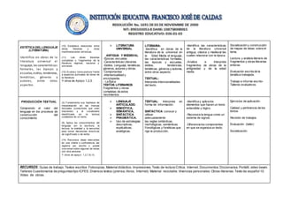 Este documento presenta el plan de asignatura para Español y Literatura del grado undécimo. Consta de dos períodos que abarcan cuatro unidades en total centradas en la identidad, lo clásico, el Renacimiento y los medios de comunicación. Cada unidad incluye estándares, saberes, competencias, actividades y formas de evaluación relacionadas principalmente con la interpretación textual, producción escrita y literatura.