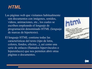 Este documento describe los fundamentos técnicos de Internet, incluyendo HTML para crear páginas web, navegadores para verlas, servidores para almacenarlas, HTTP para transferirlas, URLs para localizarlas, IPs para identificar dispositivos, DNS para traducir nombres a IPs, TCP para enviar datos de forma fiable, y routers para enrutar el tráfico de red de manera eficiente.