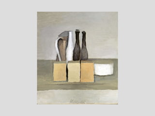 Giorgio Morandi fue un pintor italiano nacido en 1890 que es considerado uno de los mejores artistas del siglo XX en Italia. Se le conocía por sus naturalezas muertas minimalistas que a menudo representaba objetos comunes como botellas y frascos en composiciones simplificadas.