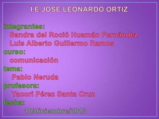 Pablo Neruda fue un poeta, escritor, diplomático y político chileno nacido en 1904 que es conocido por ser uno de los máximos exponentes de la poesía del siglo XX. Algunas de sus obras más importantes incluyen Veinte poemas de amor y una canción desesperada y Canto general.