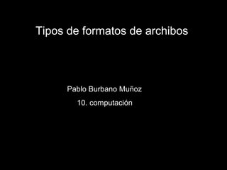 Este documento describe diferentes formatos de archivos de imágenes digitales, incluyendo formatos vectoriales, de mapa de bits, y de compresión. Explica que las imágenes vectoriales se componen de objetos geométricos y las de mapa de bits almacenan información de color de cada píxel. Luego resume formatos comunes como TIFF, RAW, BMP, EPS, PSD, PDF, JPEG, GIF y PNG y sus usos respectivos.