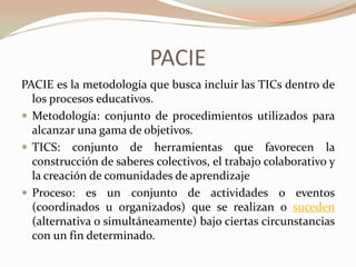 La metodología PACIE busca determinar los sistemas