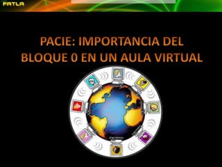 El documento describe la metodología PACIE creada por el Ingeniero Pedro Camacho para revolucionar la educación mediante el uso de tecnología. PACIE busca incluir las TIC en la educación enfocándose en el docente y fomentando el uso organizado de las TIC en las aulas. El documento también describe las 5 fases de PACIE (Presencia, Alcance, Capacitación, Interacción y Elearning) y la importancia del Bloque 0 en un aula virtual, el cual contribuye a la interacción, trabajo y aprendizaje cooper