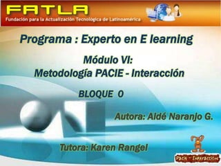 El Bloque 0 es el eje de la interacción y fuente del conocimiento en la Metodología PACIE. Se compone de Información, Comunicación e Interacción, las cuales están estrechamente interrelacionadas y le dan un toque humano al aprendizaje virtual. Cada componente del Bloque 0 debe estar bien diseñado y organizado para facilitar el proceso a los estudiantes.