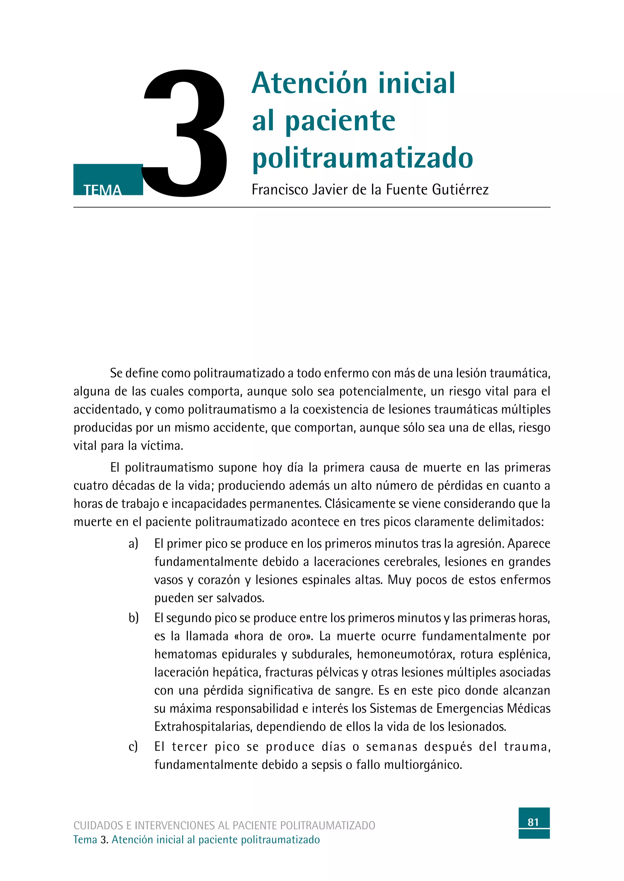 Este documento describe la atención inicial al paciente politraumatizado. Explica que el politraumatismo es la principal causa de muerte en las primeras cuatro décadas de vida y causa altos costos en términos de horas de trabajo y discapacidades permanentes. Describe los tres picos en los que suele producirse la muerte de un paciente politraumatizado y enfatiza la importancia de la valoración inicial, resucitación y monitoreo continuo del paciente. También destaca la necesidad de una cadena de asistencia que asegure la