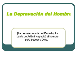 El documento resume las doctrinas de la gracia según el calvinismo. Explica que la salvación es solo por gracia de Dios, no por obras, debido a que el pecado de Adán dejó a la humanidad incapacitada para buscar a Dios o agradarle. Solo Dios puede regenerar al hombre mediante Su gracia soberana al escoger a algunos para la salvación.