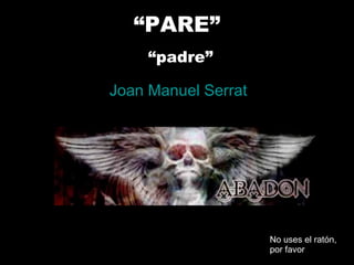El poema describe la destrucción del medio ambiente y la guerra a través de los ojos de un padre. El río, el bosque y el campo ya no son lo que eran, y la gente se queda sin recursos. Por la noche lloverá sangre del cielo. Monstruos de hierro amenazan la tierra. El padre pide calma y esperanza, a pesar de la guerra declarada.