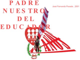 Este documento presenta una versión del Padre Nuestro adaptada al contexto educativo. En ella se pide que Dios santifique su nombre en la comunidad educativa, que su reino se extienda en el gobierno escolar, y que cada proceso pedagógico se realice de acuerdo a su voluntad con valores como la verdad, la belleza y la justicia. También se pide el pan de cada día para compartir el conocimiento de manera solidaria, así como perdón por las ofensas cometidas y protección contra la tentación de abandonar el