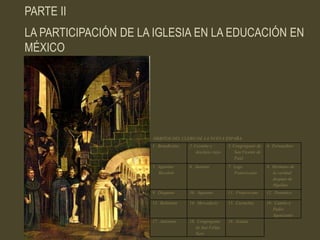 El documento aborda la historia de la educación en México, destacando la participación de la iglesia desde el periodo virreinal hasta la revolución, donde se excluyó su influencia educativa. Se analizan las tensiones entre el clero y el estado, así como la evolución de la educación laica y humanista, incluyendo aportes significativos de figuras como José Vasconcelos. Finalmente, se menciona el Concilio Vaticano II y la necesidad de una educación integral que promueva la liberación y el desarrollo del individuo y la sociedad.