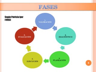 Este documento describe el caso de una paciente llamada Ana Ma que está siendo tratada por un trastorno perceptivo sensorial relacionado con deterioro cognitivo. El objetivo general es que la paciente disminuya sus alteraciones sensoriales/perceptuales dentro de la primera semana de hospitalización. Las intervenciones de enfermería incluyen establecer una relación terapéutica, reforzar la rutina diaria, usar afirmaciones claras y directas, e intervenir durante las alucinaciones. La evaluación muestra una mejoría parcial luego de 6 días de tratamiento