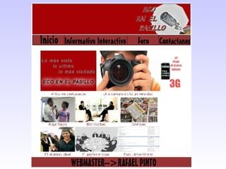 El documento describe un sitio web llamado "Eco en el pasillo" que recopila opiniones y comentarios de estudiantes universitarios sobre su facultad de Ciencias de la Comunicación, Turismo y Psicología. El sitio web incluirá secciones como Inicio, Informativo, Interactivo, y Foro para compartir información y discutir temas relacionados con la facultad.