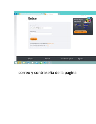 Este documento habla brevemente sobre el inicio de sesión en una página web, incluyendo la dirección de correo electrónico de la página, las credenciales de inicio de sesión requeridas y el acceso a la página principal una vez iniciada la sesión.