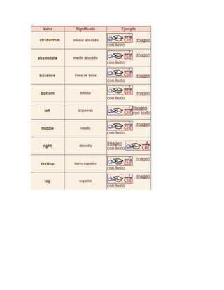 Este documento presenta un resumen de las características básicas de las imágenes en las páginas web, incluyendo cómo insertar imágenes, agregar texto alternativo, establecer bordes, modificar el tamaño y alinear imágenes. También incluye el código HTML de un sitio web corporativo que utiliza varias imágenes con estas características.