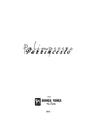 Este documento presenta la antología "Palimpsesto-Parrincesto", la cual contiene versiones renovadas de poemas clásicos realizadas por diversos autores. El antólogo explica que el título busca reflejar la naturaleza dialógica e intertextual de la literatura, en donde un texto se nutre y transforma a otros. La antología reúne 28 poetas que eligieron un poema ajeno que los atrajo y luego crearon una nueva versión del mismo.