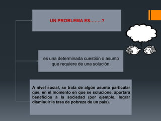 Este documento presenta información sobre el árbol de problemas y el árbol de objetivos. Explica que el árbol de problemas identifica las causas y efectos de un problema central mediante una representación gráfica de las relaciones causa-efecto, mientras que el árbol de objetivos convierte los problemas identificados en objetivos del proyecto. También describe los pasos para elaborar un árbol de problemas y provee ejemplos de árboles de problemas y objetivos relacionados con la construcción de canales de riego.