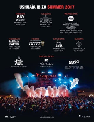 El documento habla sobre las inversiones y nuevos proyectos que Palladium Hotel Group realizará en 2017, incluyendo una inversión de más de 20 millones de euros para mejorar sus hoteles en el Caribe y México. También detalla la renovación de las habitaciones de The Ushuaïa Club en Ibiza y la conversión del Grand Palladium Riviera Resort & Spa en México en un hotel solo para adultos llamado The Royal Suites Yucatán. El grupo seguirá enfocándose en brindar una excelente experiencia a