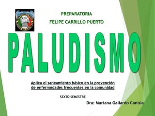 El documento trata sobre el paludismo o malaria. Explica que es una enfermedad causada por parásitos del género Plasmodium que se transmite a través de la picadura de mosquitos infectados. Describe el ciclo de vida del parásito entre el mosquito y el huésped humano, incluyendo las etapas hepática y sanguínea. También cubre los síntomas, diagnóstico y aspectos epidemiológicos de la enfermedad.