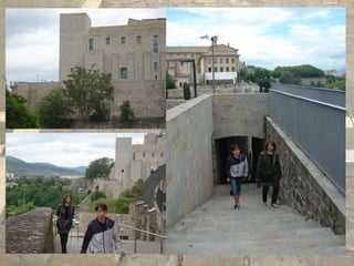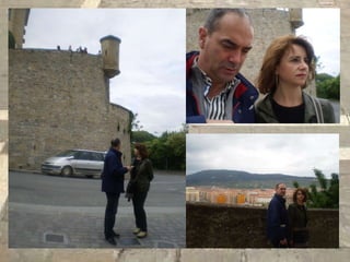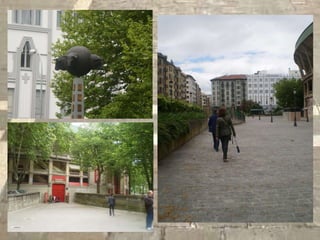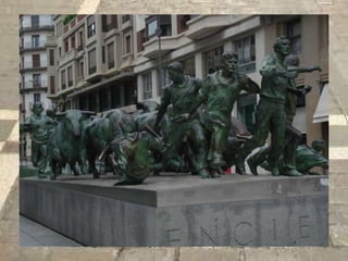 Este documento proporciona una breve guía de lugares emblemáticos en la ciudad de Pamplona, España, incluyendo el Café Iruña, La Milagrosa, La Ciudadela, Plaza del Castillo, la iglesia de San Cernín, el ayuntamiento, Portal de Francia, el Camino de Santiago, el puente de La Magdalena, el río Arga y Rincón del Caballo Blanco y la iglesia de Santa María la Real.