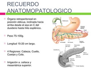 La pancreatitis aguda es una enfermedad inflamatoria del páncreas que involucra tejido peri pancreático y puede afectar otros órganos. Los síntomas incluyen dolor abdominal intenso, náuseas y vómitos. El diagnóstico se basa en hallazgos de imagen y niveles elevados de enzimas pancreáticas. El tratamiento consiste en hidratación, analgesia, antibióticos en algunos casos y cirugía para complicaciones. La prognosis depende de la gravedad evaluada por escalas como Ranson y Glasgow