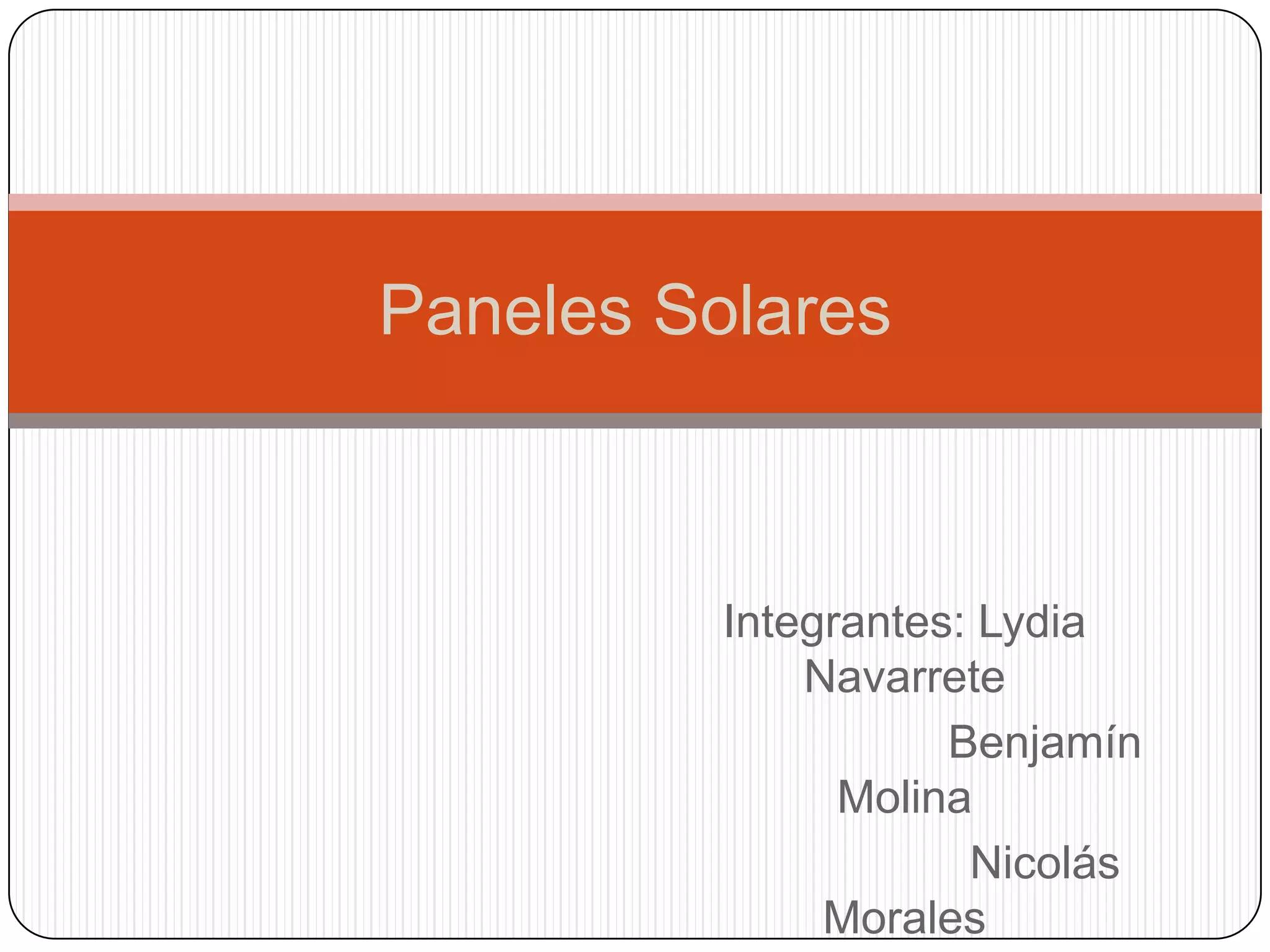 Este documento describe paneles solares, incluyendo sus características, beneficios y desventajas. Los paneles solares convierten la energía solar en electricidad mediante celdas fotovoltaicas. Proporcionan energía renovable que no contamina y puede ahorrar entre un 20% y 100% en costos de energía. Sin embargo, los paneles solares tienen un alto costo inicial de instalación.