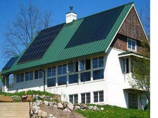El documento describe los paneles solares, los cuales convierten la energía solar en energía eléctrica de manera limpia y sostenible. Explica que los paneles solares fueron inventados en 1954 y que aprovechan la radiación solar, una fuente de energía renovable e inagotable, para generar electricidad sin contaminar. También resalta las ventajas de los paneles solares como producir energía limpia, reducir costos de energía y ser un proyecto ecológico con piezas que se pueden reciclar en un 80%.