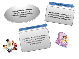 Este documento resume los conceptos clave de la teoría histórico-cultural de Vigotsky. Explica que el aprendizaje es una construcción social permanente del sujeto a través de la apropiación de la cultura en interacción con los demás usando el lenguaje como instrumento. También describe las funciones psíquicas superiores, la zona de desarrollo próximo, el proceso de interiorización y la relación entre aprendizaje, desarrollo y lectura según la teoría de Vigotsky.