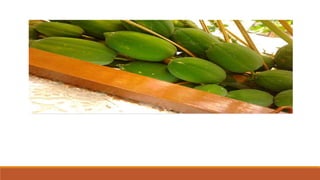 La papaya es una fruta tropical rica en vitaminas, minerales y la enzima papaína. La papaína se encuentra en las papayas verdes y ayuda a digerir las proteínas, aliviar la indigestión y tratar problemas gastrointestinales. Además, la papaína tiene usos medicinales para curar picaduras de insectos, expulsar parásitos y tratar eccemas, psoriasis y bronquitis.