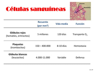 El documento describe el papel de las plaquetas en la hemostasia. Las plaquetas son células sanguíneas anucleadas que se adhieren a los sitios de lesión vascular y secretan sustancias que activan más plaquetas y los factores de la coagulación, formando un tapón plaquetario que detiene el sangrado. Las plaquetas contienen gránulos con factores de crecimiento y moléculas que inducen la agregación plaquetaria y la formación del coágulo durante la coagulación sanguínea.