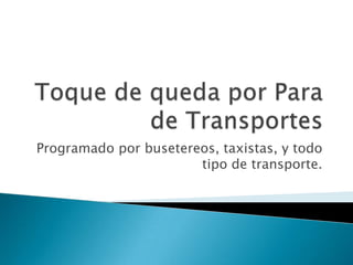 El documento habla sobre una protesta programada por conductores de autobuses, taxis y otros tipos de transporte.