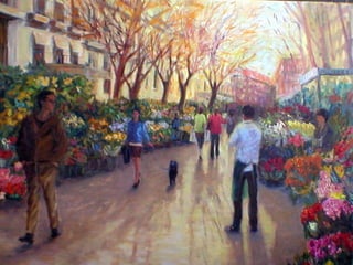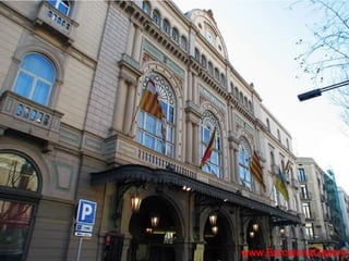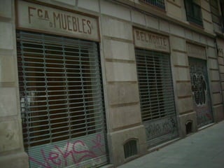 El documento describe recuerdos de lugares y tiendas de la Barcelona de mediados del siglo XX, como una pastelería, una tienda de café, una bodega, una farmacia, un bar, un restaurante, una tienda de ultramarinos y un quiosco propiedad de la familia del autor. También menciona lugares como el Hotel España, la avenida de la Luz, cines y famosos de Barcelona como Josep Carreras, Joan Capri, Manuel Vázquez Montalbán y Joan Manuel Serrat.