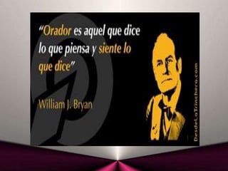 Este documento describe los fundamentos de la oratoria jurídica. Explica que la oratoria jurídica involucra demostrar pruebas de manera dialéctica, persuadir mediante elocución y emociones, y hablar con claridad, sencillez, concisión, coherencia, fluidez, naturalidad y elegancia para lograr un impacto. También destaca la importancia de enfrentarse a uno mismo para generar confianza al hablar en público.