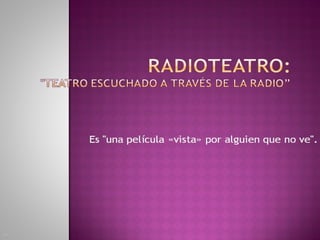 El documento habla sobre los elementos clave de un guión de radio, incluyendo el uso de la música como cortina musical, indicadora de estados de ánimo o fondo musical. También menciona al sonidista, que crea efectos de sonido como pasos o un teléfono sonando. Explica que los personajes deben ser de número reducido y tener acotaciones sobre su expresión y situación. Finalmente, recomienda leer en voz alta el guión cronometrando las pausas y tiempos para música, y que una buena producción requiere de un
