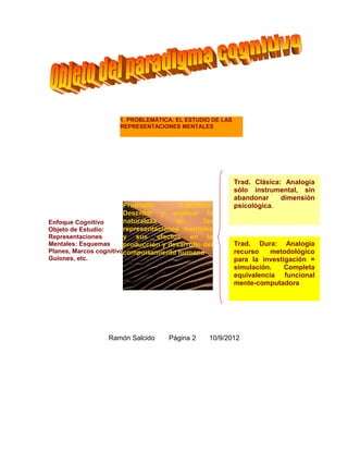 El documento resume el paradigma cognitivo, incluyendo:
